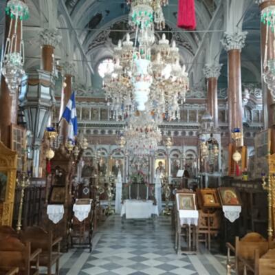 När vi når Agiassos fortsätter vi genom bergsbyn ner till kyrkan Panagia ti Vrefokratousa,som är målet för pilgrimerna.Med all respekt för den Grekisk-ortodoxa tron har vi nu möjlighet att ställa oss i kö för att komma in i kyrkan och få se den heliga ikonen av jungfru Maria.Tillsammans gör vi nu upp om vilken tid vi skall samlas för avfärd tillbaka till hotellet.Det finns mycket att titta på och många festligheter så vi kommer vara mycket flexibla för de som kanske vill ströva runt eller äta middag.