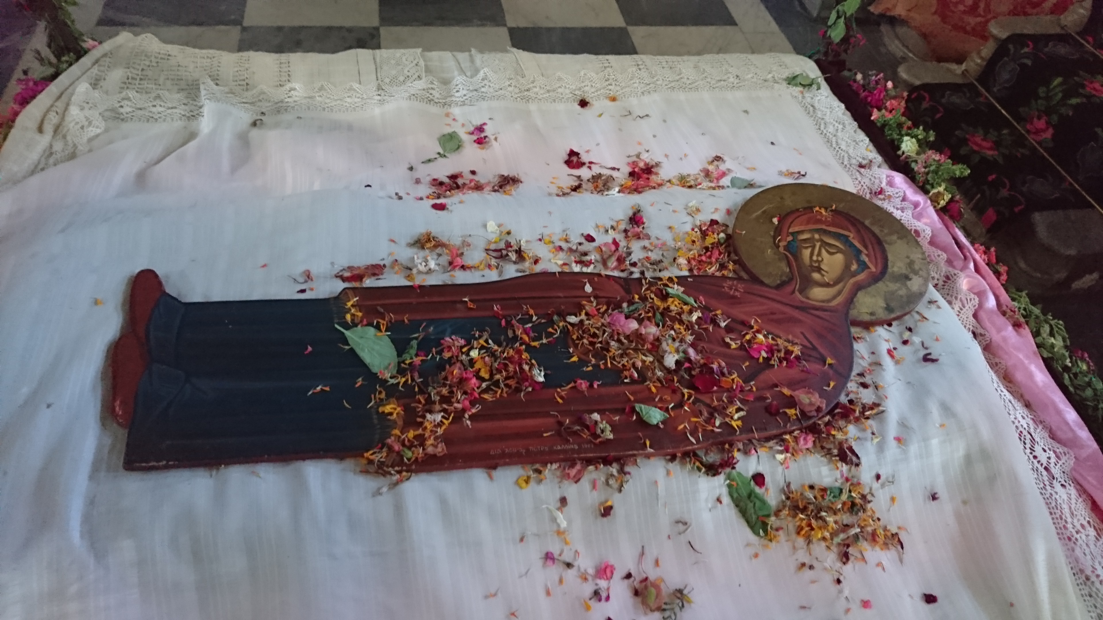 När vi når Agiassos fortsätter vi genom bergsbyn ner till kyrkan Panagia ti Vrefokratousa,som är målet för pilgrimerna.Med all respekt för den Grekisk-ortodoxa tron har vi nu möjlighet att ställa oss i kö för att komma in i kyrkan och få se den heliga ikonen av jungfru Maria.Tillsammans gör vi nu upp om vilken tid vi skall samlas för avfärd tillbaka till hotellet.Det finns mycket att titta på och många festligheter så vi kommer vara mycket flexibla för de som kanske vill ströva runt eller äta middag.