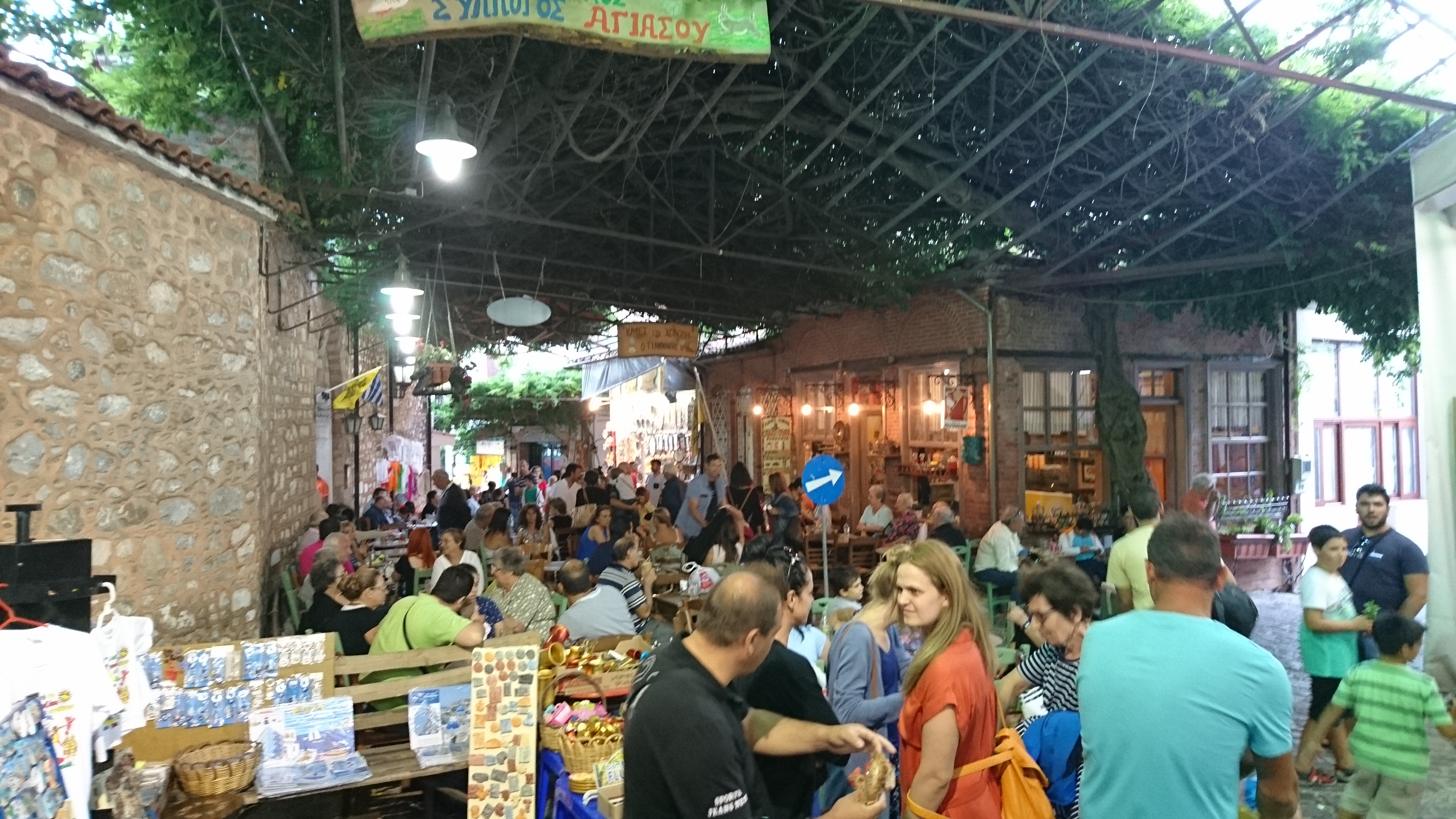 05.00 samlas vi utanför hotellet.Med en flaska vatten i handen och mjuka bra vandringsskor ger vi oss iväg efter landsvägen mot Agiassos.Vi gör en bedömningen av vandringen till medel-svår 4/5 mycket pga sträckan på 15 km och värmen som kan vara besvärande.Vi räknar med 7–8 timmar att gå i lugnt tempo.Efter drygt 4-5 km gör vi vårt första stop,och vår ena buss finns parkerad där med en enklare frukostservering.Vi fortsätter sedan vår vandring och vi kommer garanterat inte vara ensamma efter vägen,utan vi följs åt av många som har samma mål. Pilgrimsvandringen till Agiassos är en gammal tradition på Lesvos som lockar vandrare från hela Grekland då det är en viktig angelägenhet att gå till Agiassos.Det är för den heliga ikonen av jungfrun Maria man vandrar dit först o främst,men också för den fest som lockar i den gamla pittoreska byn med små hus och gamla stensatta gator beläget i de vackra Olymposbergen.