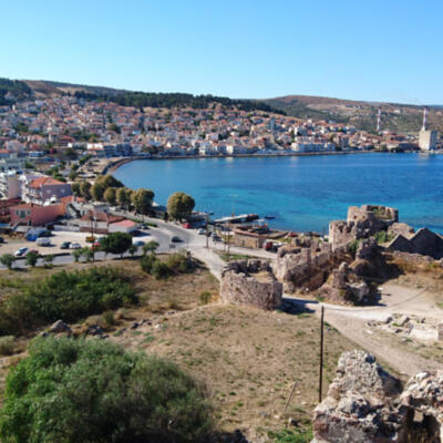 Vi äter frukost och samlas 09.30 utanför hotellet för en kort resa in till Mytillini centrum.Vi startar vår promenad vid frihetsgudinnan i hamnen och denna vandring-promenad är 3 km så vi räknar med 2 timmar. Ungefär halva tiden ägnas åt Castle of Mytilene (som är en av medelhavets största) och andra halvan åt staden där man får se några historiska platser från ca 500 f kr, till den mer moderna södra hamnen. Underlaget är gator av asfalt och kullersten så vanliga gymnastikskor fungerar mycket bra .
