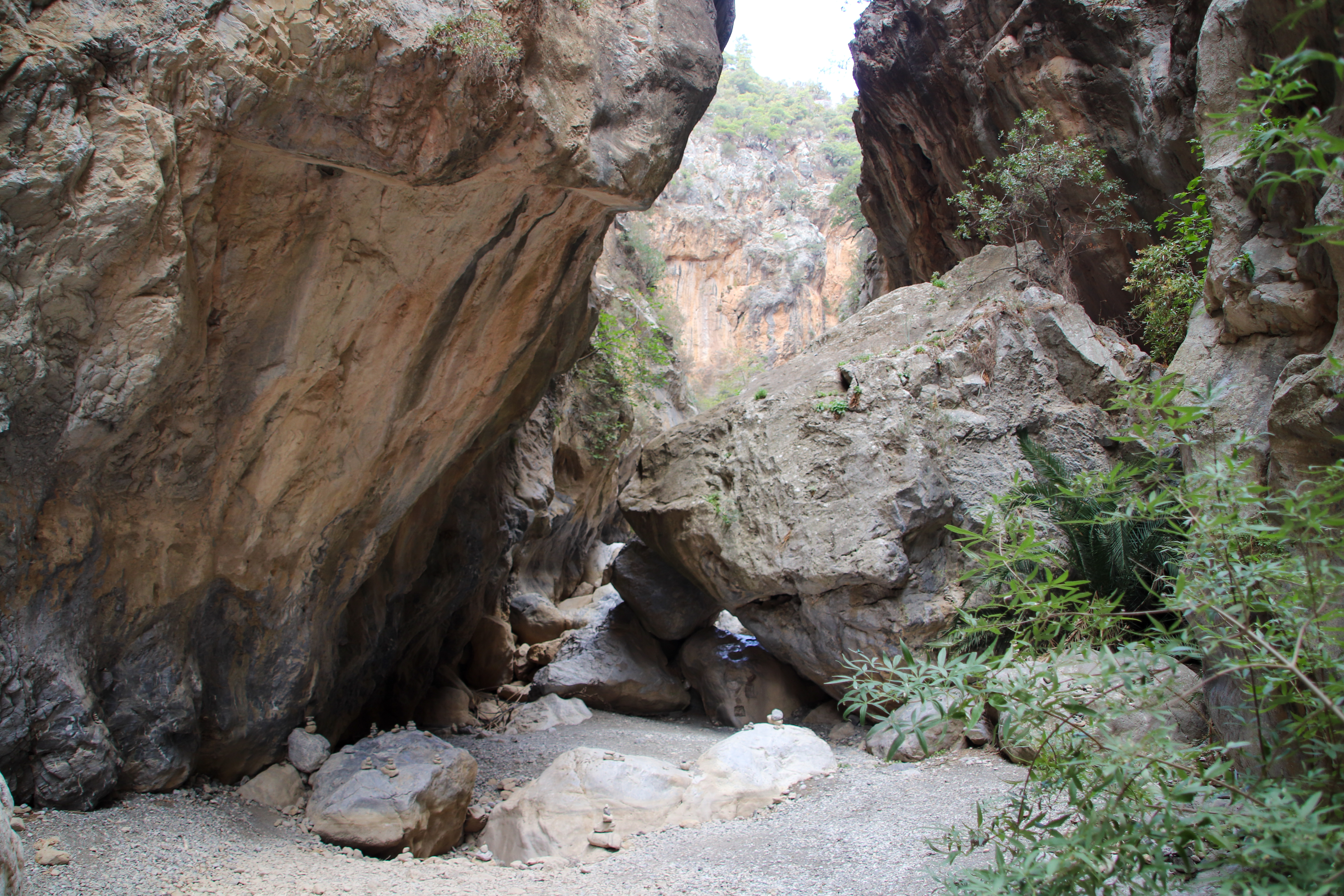 Sarakinasravinen är äventyrskänsla förbi lodräta smala och höga bergsväggar på var sida. På sina ställen vid kortare passager tar vi oss genom även med hjälp av händer vid väl förankrade rep och lättare klättring. Det är en kort ravin om man jämför med andra raviner på Kreta. Efter en knapp kilometer är du ute ur ravinens norra port och går in i en blandskog.