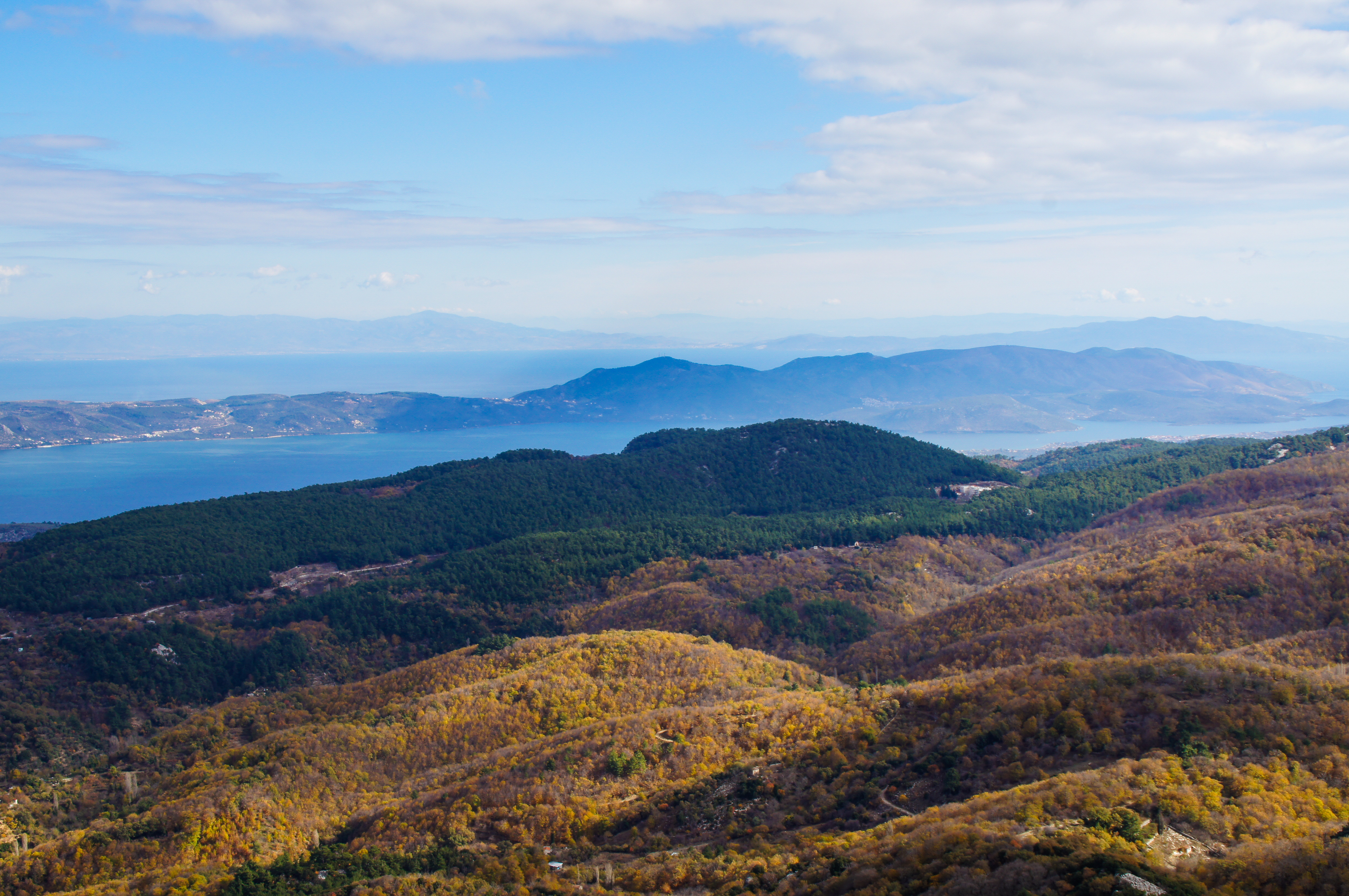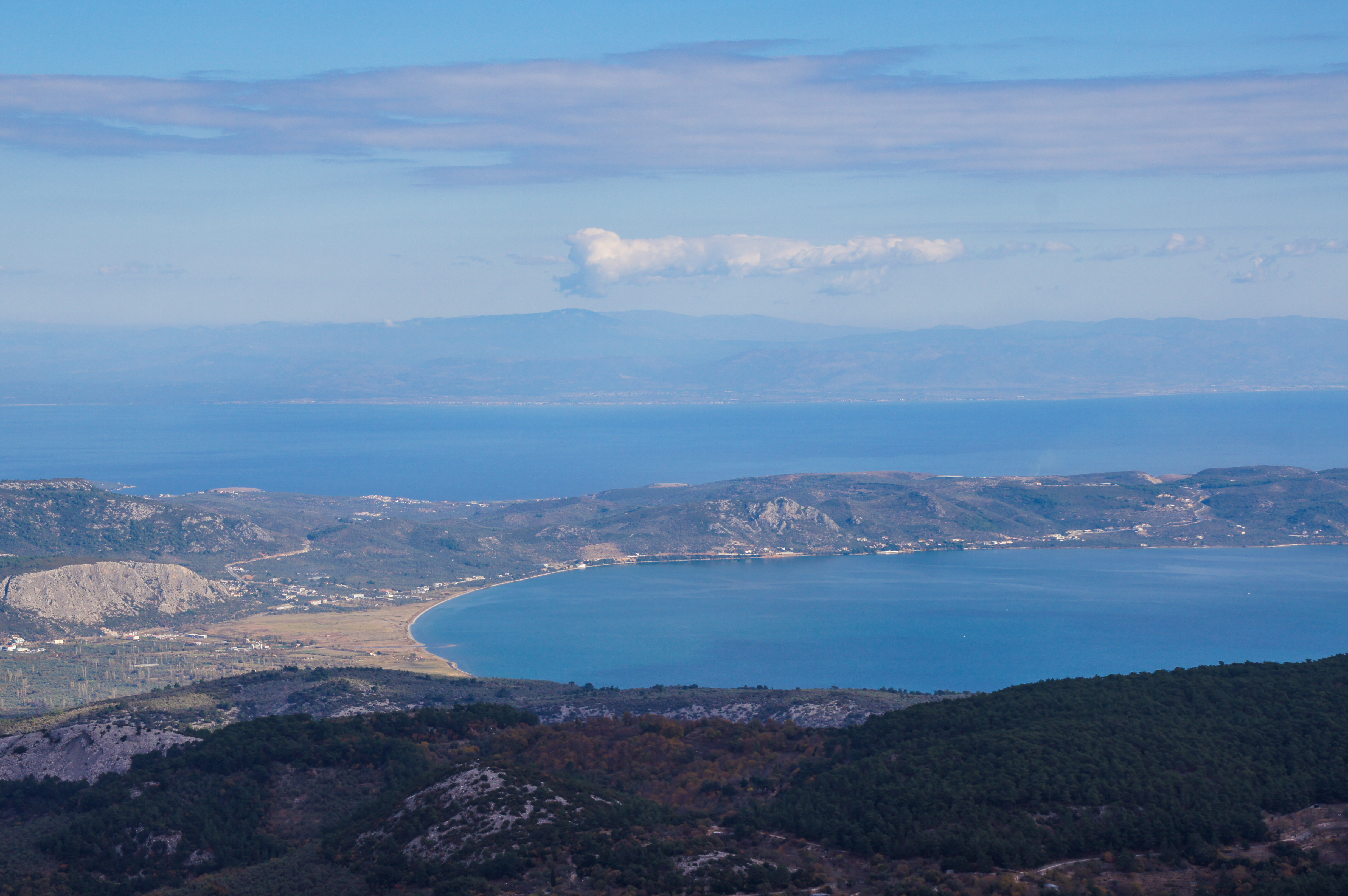 Här följer vi först gamla transportleder i Natura-2000 område som till en början går i fin kastanjeskog som räknas till den största bland öarna i Egeiska havet. Varefter man tar höjd blir utsikten bättre. Själva toppen av Mt. Olympos bjuder på milsvid panoramautsikt. Berget i sig beskrivs som ett tektoniskt fönster för geologer och har en karakteristisk form.