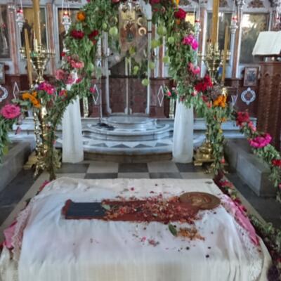 När vi når Agiassos fortsätter vi genom bergsbyn ner till kyrkan Panagia ti Vrefokratousa,som är målet för pilgrimerna.Med all respekt för den Grekisk-ortodoxa tron har vi nu möjlighet att ställa oss i kö för att komma in i kyrkan och få se den heliga ikonen av jungfru Maria.Tillsammans gör vi nu upp om vilken tid vi skall samlas för avfärd tillbaka till hotellet.Det finns mycket att titta på och många festligheter så vi kommer vara mycket flexibla för de som kanske vill ströva runt eller äta middag.