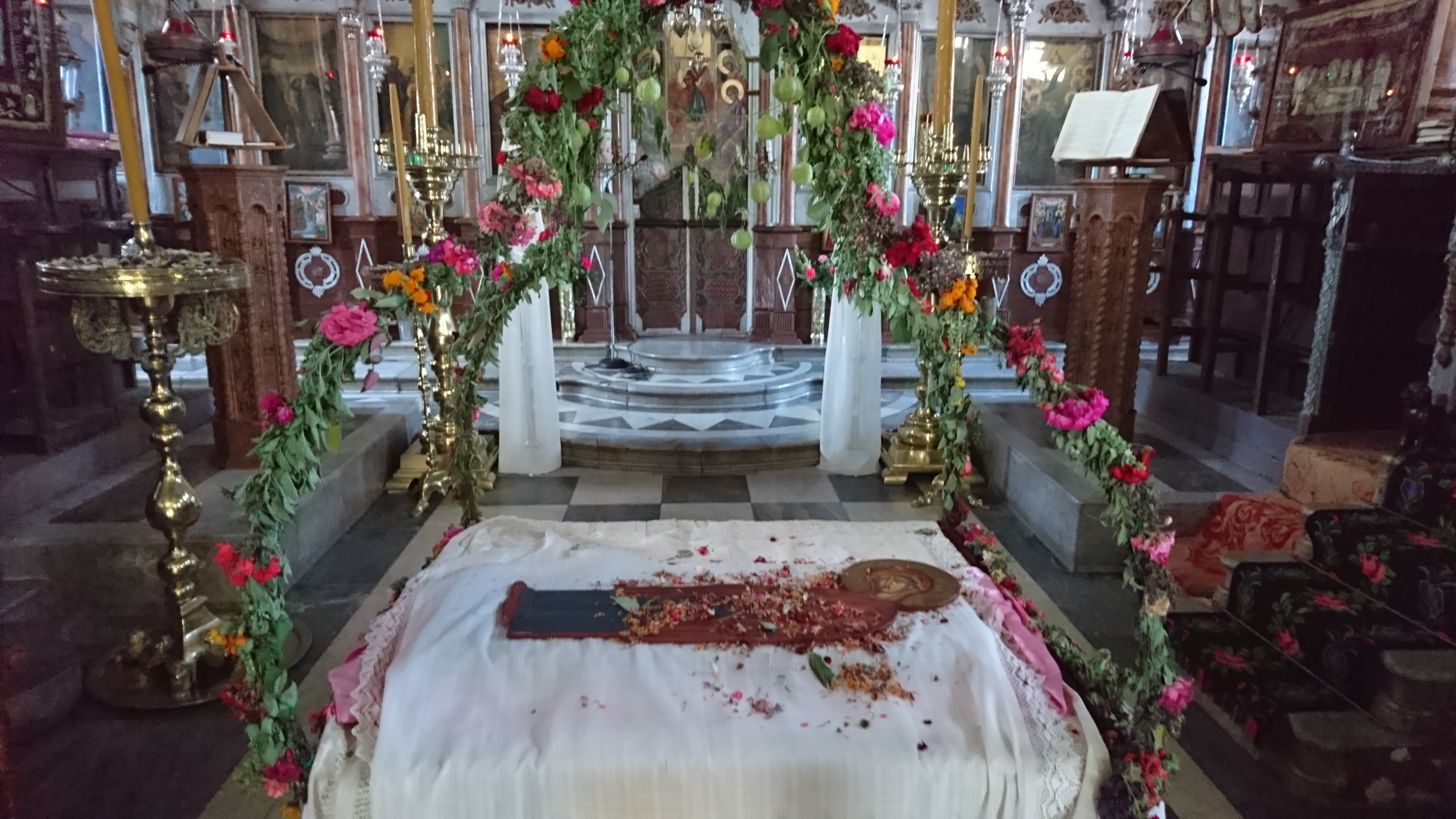 När vi når Agiassos fortsätter vi genom bergsbyn ner till kyrkan Panagia ti Vrefokratousa,som är målet för pilgrimerna.Med all respekt för den Grekisk-ortodoxa tron har vi nu möjlighet att ställa oss i kö för att komma in i kyrkan och få se den heliga ikonen av jungfru Maria.Tillsammans gör vi nu upp om vilken tid vi skall samlas för avfärd tillbaka till hotellet.Det finns mycket att titta på och många festligheter så vi kommer vara mycket flexibla för de som kanske vill ströva runt eller äta middag.